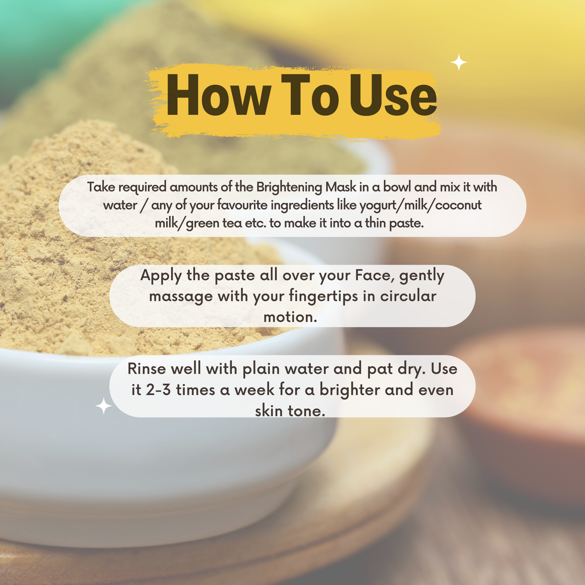 Brightening pack is a combination of finely powdered herbs, pulses, cereals and nuts. It softens and smoothens while mildly exfoliating and brightening the skin naturally. This is a formulation which has been used for centuries to achieve radiant and smooth skin.