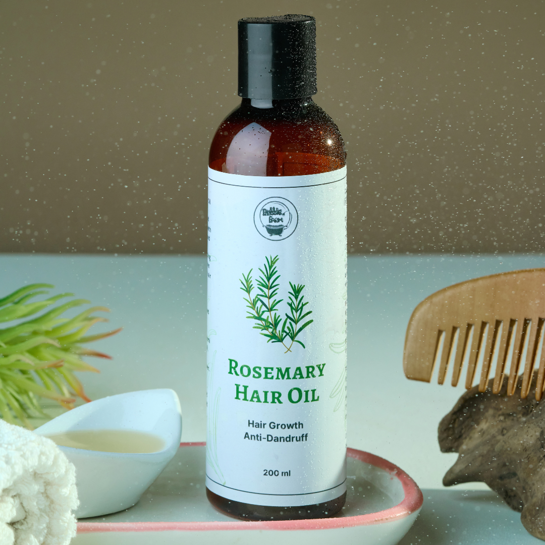 If you want longer, stronger, healthier hair then look no further than the Bubblefarm Rosemary Hair Oil. This hair oil is made up of a nutrient-rich, intensive formula that supports a range of hair concerns. Rosemary Hair Oil is perfect for everyone struggling with dandruff and hair fall. This oil is infused with fresh rosemary and essential oil in sesame and almond oil. This combination helps in restoring the damaged hair, strengthen the hair follicle and aids in hair growth.